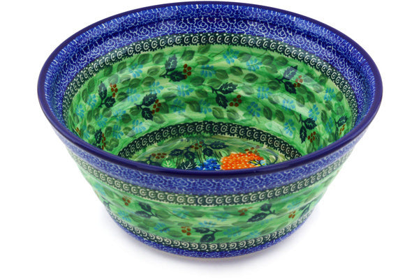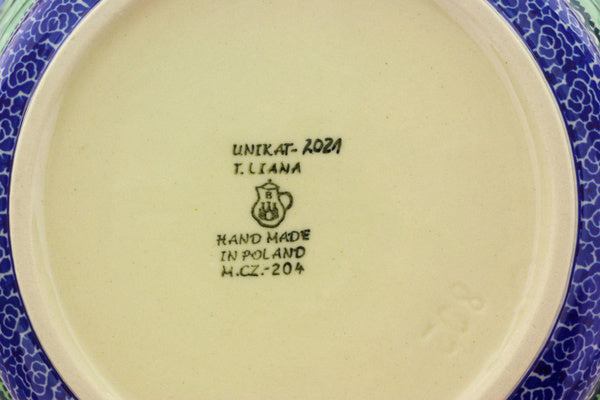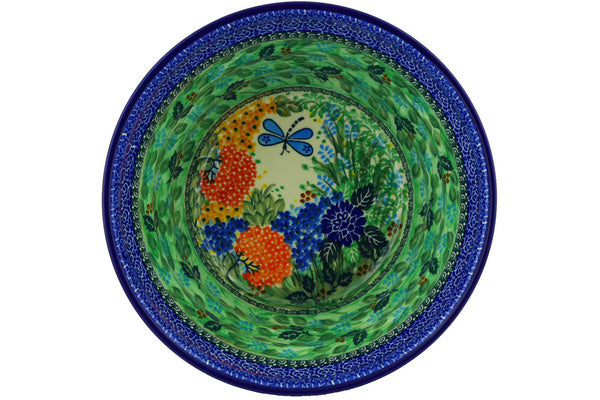 This Garden Delight 11" Bowl was handmade and hand decorated in Boleslawiec, Poland by skilled artisans according to old traditional methods. This is a Polish pottery Signature Unikat, which means that it has been hand painted with both sponges and brushes and it is signed by the artist who painted it. Unikat pieces are the most intricate works of art. Larger Unikat items take hours of very careful work to finish. This Polish stoneware is microwave, dishwasher, freezer, and oven safe up to 480°F. It does not contain lead or cadmium. It is part of the Garden Delight Collection.