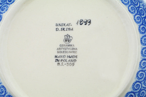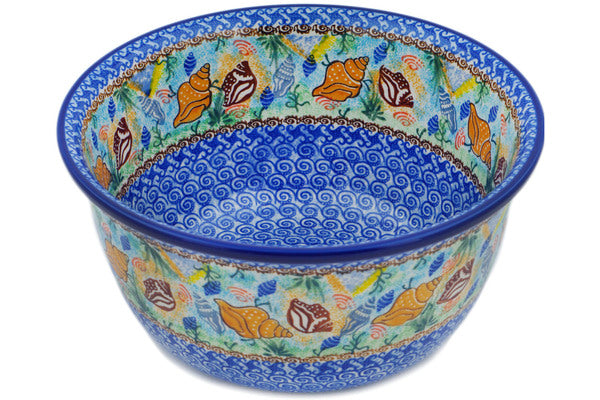 This Ocean Whisper 11" Bowl was handmade and hand decorated in Boleslawiec, Poland by skilled artisans according to old traditional methods. This is a Polish pottery Signature Unikat, which means that it has been hand painted with both sponges and brushes and it is signed by the artist who painted it. Unikat pieces are the most intricate works of art. Larger Unikat items take hours of very careful work to finish. This Polish stoneware is microwave, dishwasher, freezer, and oven safe up to 480°F. It does not contain lead or cadmium. It is part of the Ocean Whisper Collection.