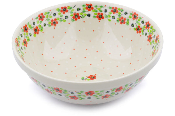 This Poppy Flower 11" Bowl was handmade and hand decorated in Boleslawiec, Poland by skilled artisans according to old traditional methods. This Polish stoneware is microwave, dishwasher, freezer, and oven safe up to 480°F. It does not contain lead or cadmium. It is part of the Poppy Flower Collection.