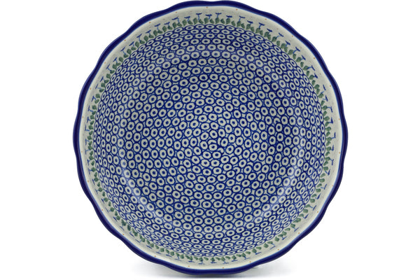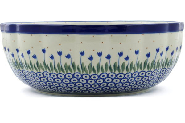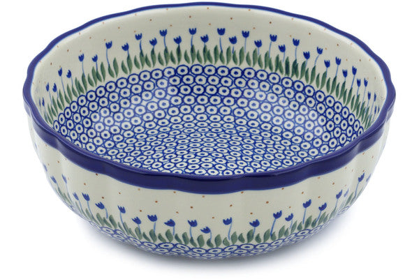 This Water Tulip 11" Fluted Bowl was handmade and hand decorated in Boleslawiec, Poland by skilled artisans according to old traditional methods. This Polish stoneware is microwave, dishwasher, freezer, and oven safe up to 480°F. It does not contain lead or cadmium. It is part of the Water Tulip Collection.