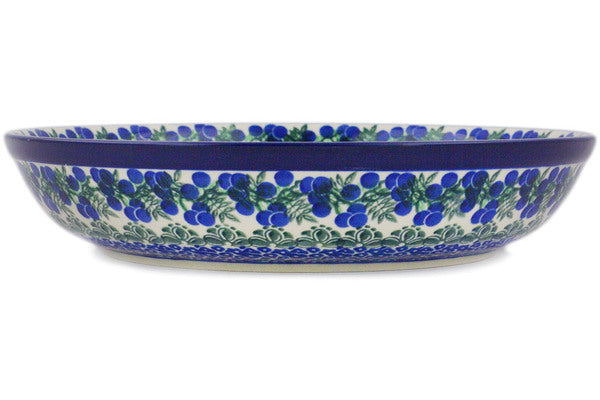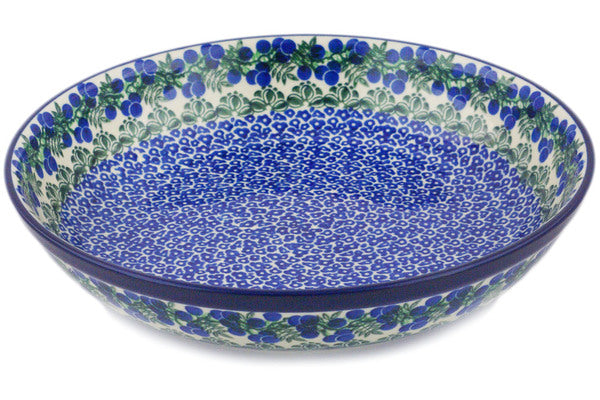 This Blueberry Fields Forever 13" Bowl was handmade and hand decorated in Boleslawiec, Poland by skilled artisans according to old traditional methods. This Polish stoneware is microwave, dishwasher, freezer, and oven safe up to 480°F. It does not contain lead or cadmium. It is part of the Blueberry Fields Forever Collection.