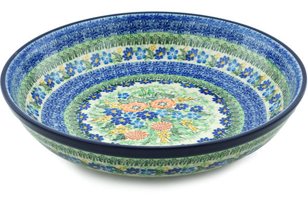 This Brilliant Bouquet 13" Bowl was handmade and hand decorated in Boleslawiec, Poland by skilled artisans according to old traditional methods. This is a Polish pottery Signature Unikat, which means that it has been hand painted with both sponges and brushes and it is signed by the artist who painted it. Unikat pieces are the most intricate works of art. Larger Unikat items take hours of very careful work to finish. This Polish stoneware is microwave, dishwasher, freezer, and oven safe up to 480°F. It does not contain lead or cadmium. It is part of the Brilliant Bouquet Collection.