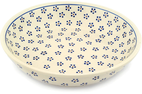 This Daisy Dots 13" Bowl was handmade and hand decorated in Boleslawiec, Poland by skilled artisans according to old traditional methods. This Polish stoneware is microwave, dishwasher, freezer, and oven safe up to 480°F. It does not contain lead or cadmium. It is part of the Daisy Dots Collection.
