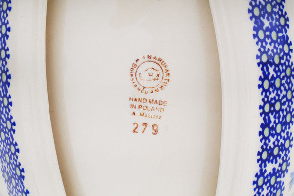 This Sweet Dreams 14" Bowl was handmade and hand decorated in Boleslawiec, Poland by skilled artisans according to old traditional methods. This Polish stoneware is microwave, dishwasher, freezer, and oven safe up to 480°F. It does not contain lead or cadmium. It is part of the Sweet Dreams Collection.