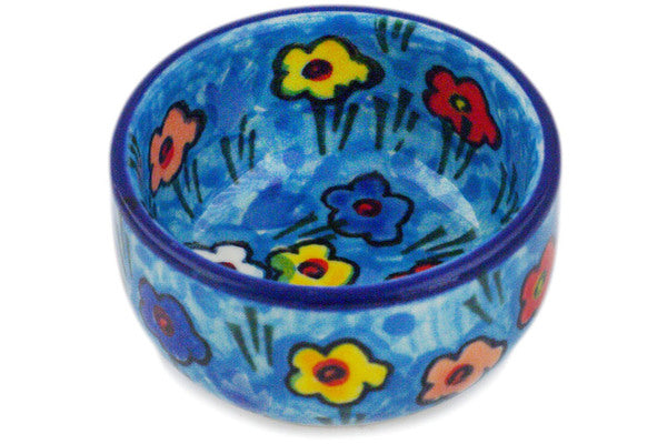 This Blue Whimsy 2" Bowl was handmade and hand decorated in Boleslawiec, Poland by skilled artisans according to old traditional methods. This is a Polish pottery Signature Unikat, which means that it has been hand painted with both sponges and brushes and it is signed by the artist who painted it. Unikat pieces are the most intricate works of art. Larger Unikat items take hours of very careful work to finish. This Polish stoneware is microwave, dishwasher, freezer, and oven safe up to 480°F. It does not contain lead or cadmium. It is part of the Blue Whimsy Collection.