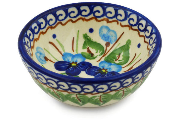 This Blue Pansy 3" Bowl was handmade and hand decorated in Boleslawiec, Poland by skilled artisans according to old traditional methods. This Polish stoneware is microwave, dishwasher, freezer, and oven safe up to 480°F. It does not contain lead or cadmium. It is part of the Blue Pansy Collection.