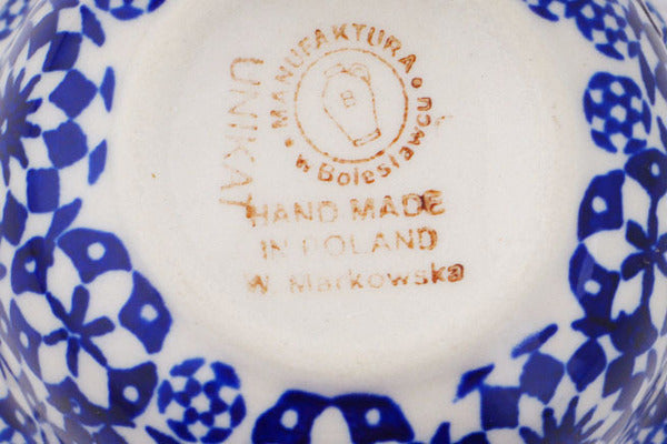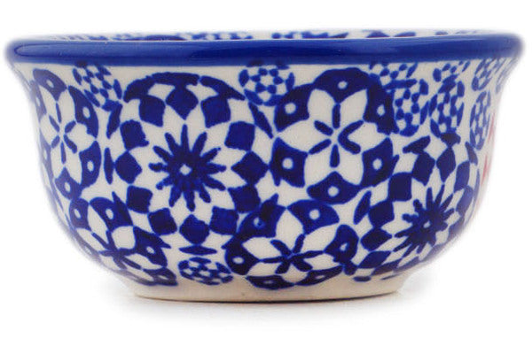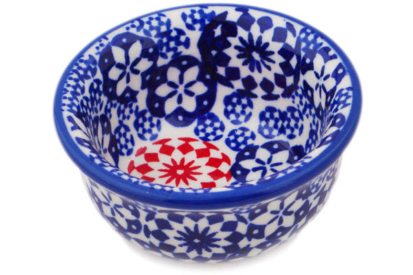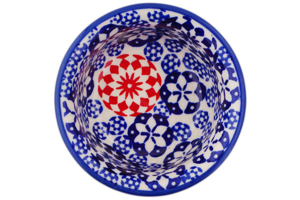 This Bullseye 3" Bowl was handmade and hand decorated in Boleslawiec, Poland by skilled artisans according to old traditional methods. This is a Polish pottery Signature Unikat, which means that it has been hand painted with both sponges and brushes and it is signed by the artist who painted it. Unikat pieces are the most intricate works of art. Larger Unikat items take hours of very careful work to finish. This Polish stoneware is microwave, dishwasher, freezer, and oven safe up to 480°F. It does not contain lead or cadmium. It is part of the Bullseye Collection.