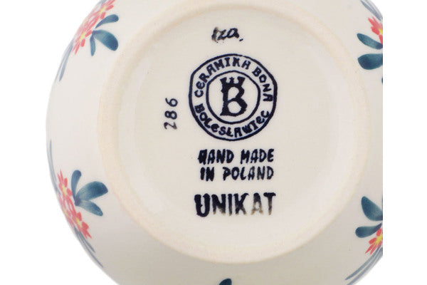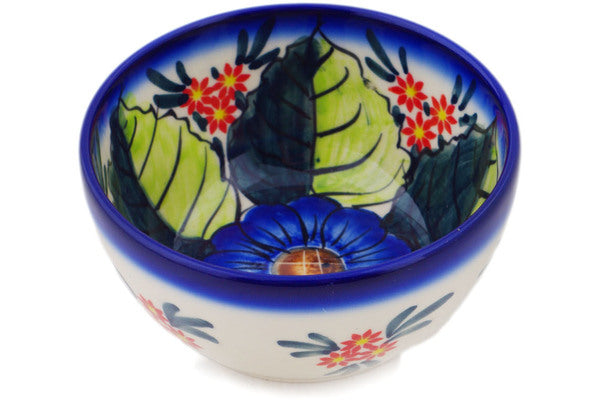 This Blue Bouquet 4" Bowl was handmade and hand decorated in Boleslawiec, Poland by skilled artisans according to old traditional methods. This is a Polish pottery Signature Unikat, which means that it has been hand painted with both sponges and brushes and it is signed by the artist who painted it. Unikat pieces are the most intricate works of art. Larger Unikat items take hours of very careful work to finish. This Polish stoneware is microwave, dishwasher, freezer, and oven safe up to 480°F. It does not contain lead or cadmium. It is part of the Blue Bouquet Collection.