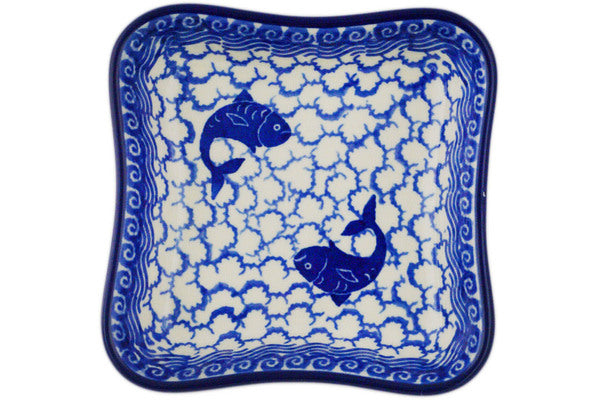 This Dancing Fish 4" Bowl was handmade and hand decorated in Boleslawiec, Poland by skilled artisans according to old traditional methods. This Polish stoneware is microwave, dishwasher, freezer, and oven safe up to 480°F. It does not contain lead or cadmium. It is part of the Dancing Fish Collection.