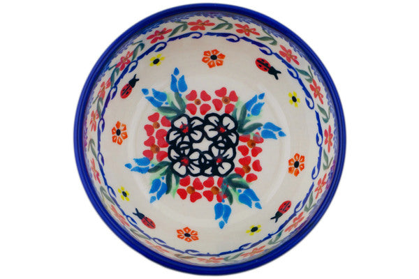 This Fanciful Ladybug 4" Bowl was handmade and hand decorated in Boleslawiec, Poland by skilled artisans according to old traditional methods. This Polish stoneware is microwave, dishwasher, freezer, and oven safe up to 480°F. It does not contain lead or cadmium. It is part of the Fanciful Ladybug Collection.