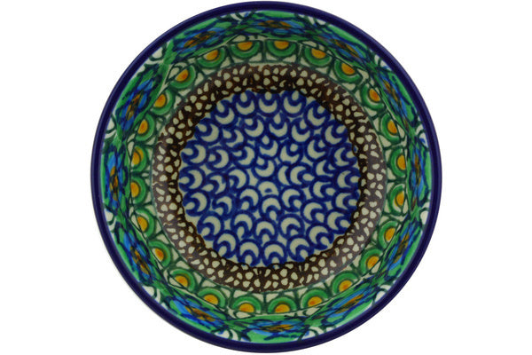 This Mardi Gras 4" Bowl was handmade and hand decorated in Boleslawiec, Poland by skilled artisans according to old traditional methods. This is a Polish pottery Signature Unikat, which means that it has been hand painted with both sponges and brushes and it is signed by the artist who painted it. Unikat pieces are the most intricate works of art. Larger Unikat items take hours of very careful work to finish. This Polish stoneware is microwave, dishwasher, freezer, and oven safe up to 480°F. It does not contain lead or cadmium. It is part of the Mardi Gras Collection.