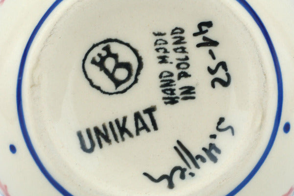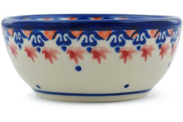 This Passion Poppy 4" Bowl was handmade and hand decorated in Boleslawiec, Poland by skilled artisans according to old traditional methods. This Polish stoneware is microwave, dishwasher, freezer, and oven safe up to 480°F. It does not contain lead or cadmium. It is part of the Passion Poppy Collection.