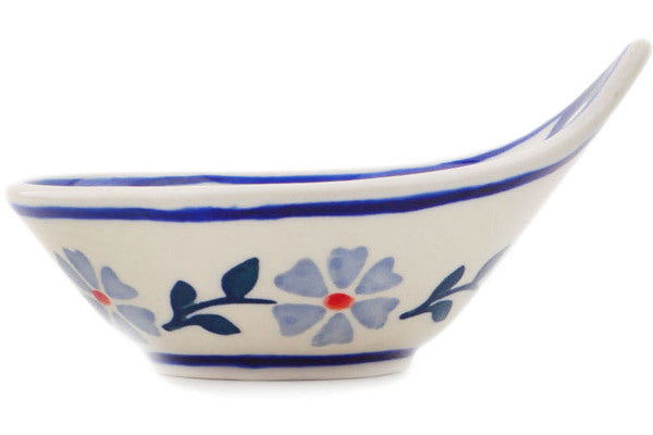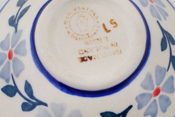 This Peacock Forget-Me-Not 4" Bowl was handmade and hand decorated in Boleslawiec, Poland by skilled artisans according to old traditional methods. This Polish stoneware is microwave, dishwasher, freezer, and oven safe up to 480°F. It does not contain lead or cadmium. It is part of the Peacock Forget-Me-Not Collection.