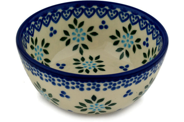 This Aster Dots 5" Bowl was handmade and hand decorated in Boleslawiec, Poland by skilled artisans according to old traditional methods. This Polish stoneware is microwave, dishwasher, freezer, and oven safe up to 480°F. It does not contain lead or cadmium. It is part of the Aster Dots Collection.