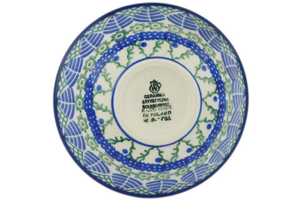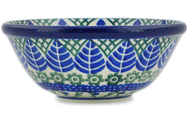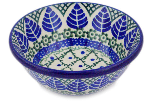 This Blue Alpine 5" Bowl was handmade and hand decorated in Boleslawiec, Poland by skilled artisans according to old traditional methods. This Polish stoneware is microwave, dishwasher, freezer, and oven safe up to 480°F. It does not contain lead or cadmium. It is part of the Blue Alpine Collection.