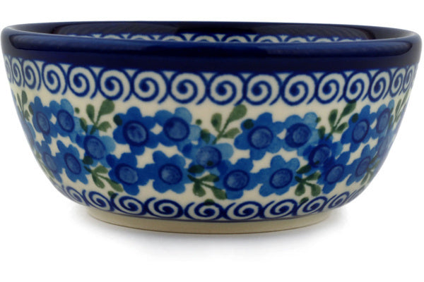 This Blue Poppy Wreath 5" Bowl was handmade and hand decorated in Boleslawiec, Poland by skilled artisans according to old traditional methods. This Polish stoneware is microwave, dishwasher, freezer, and oven safe up to 480°F. It does not contain lead or cadmium. It is part of the Blue Poppy Wreath Collection.