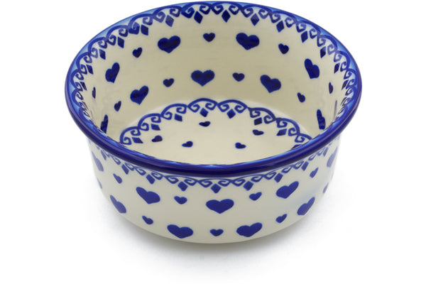 This Blue Valentine Hearts 5" Bowl was handmade and hand decorated in Boleslawiec, Poland by skilled artisans according to old traditional methods. This Polish stoneware is microwave, dishwasher, freezer, and oven safe up to 480°F. It does not contain lead or cadmium. It is part of the Blue Valentine Hearts Collection.