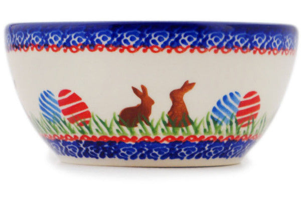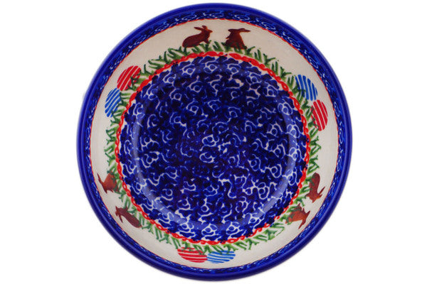 This Bun Bun Delight 5" Bowl was handmade and hand decorated in Boleslawiec, Poland by skilled artisans according to old traditional methods. This Polish stoneware is microwave, dishwasher, freezer, and oven safe up to 480°F. It does not contain lead or cadmium. It is part of the Bun Bun Delight Collection.