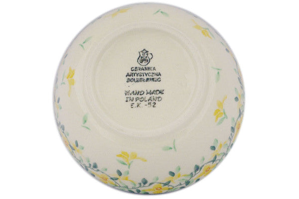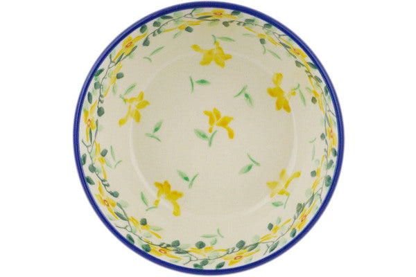 This Cheerful Jasmine 5" Bowl was handmade and hand decorated in Boleslawiec, Poland by skilled artisans according to old traditional methods. This Polish stoneware is microwave, dishwasher, freezer, and oven safe up to 480°F. It does not contain lead or cadmium. It is part of the Cheerful Jasmine Collection.