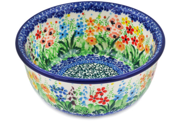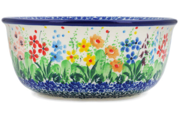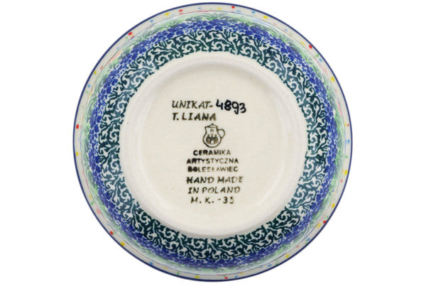 This Colors Of The Wind 5" Bowl was handmade and hand decorated in Boleslawiec, Poland by skilled artisans according to old traditional methods. This is a Polish pottery Signature Unikat, which means that it has been hand painted with both sponges and brushes and it is signed by the artist who painted it. Unikat pieces are the most intricate works of art. Larger Unikat items take hours of very careful work to finish. This Polish stoneware is microwave, dishwasher, freezer, and oven safe up to 480°F. It does not contain lead or cadmium. It is part of the Colors Of The Wind Collection.