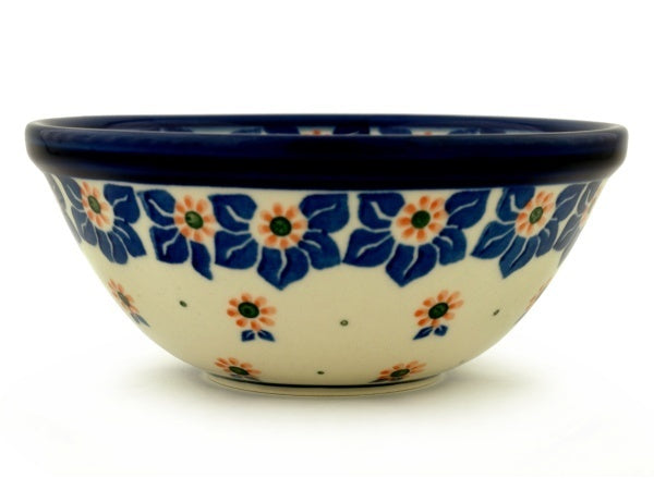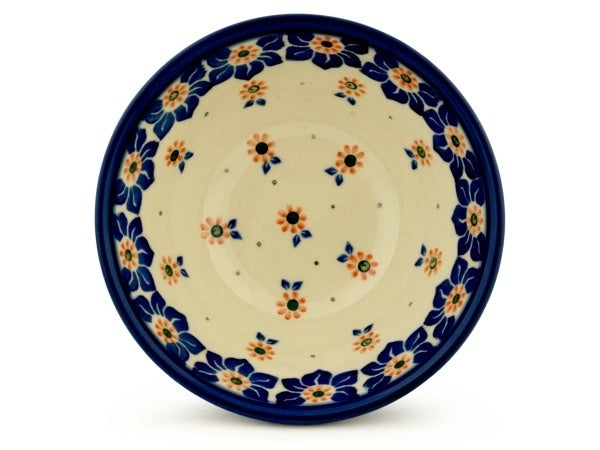 This Daisy Ribbons 5" Bowl was handmade and hand decorated in Boleslawiec, Poland by skilled artisans according to old traditional methods. This Polish stoneware is microwave, dishwasher, freezer, and oven safe up to 480°F. It does not contain lead or cadmium. It is part of the Daisy Ribbons Collection.