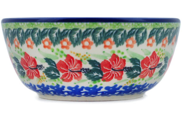 This Dove Escape 5" Bowl was handmade and hand decorated in Boleslawiec, Poland by skilled artisans according to old traditional methods. This is a Polish pottery Signature Unikat, which means that it has been hand painted with both sponges and brushes and it is signed by the artist who painted it. Unikat pieces are the most intricate works of art. Larger Unikat items take hours of very careful work to finish. This Polish stoneware is microwave, dishwasher, freezer, and oven safe up to 480°F. It does not contain lead or cadmium. It is part of the Dove Escape Collection.