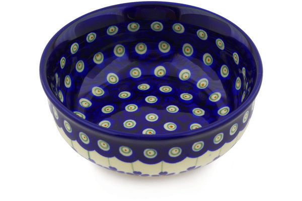 This Flowering Peacock 5" Bowl was handmade and hand decorated in Boleslawiec, Poland by skilled artisans according to old traditional methods. This Polish stoneware is microwave, dishwasher, freezer, and oven safe up to 480°F. It does not contain lead or cadmium. It is part of the Flowering Peacock Collection.