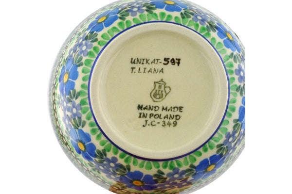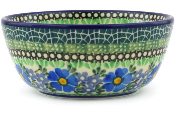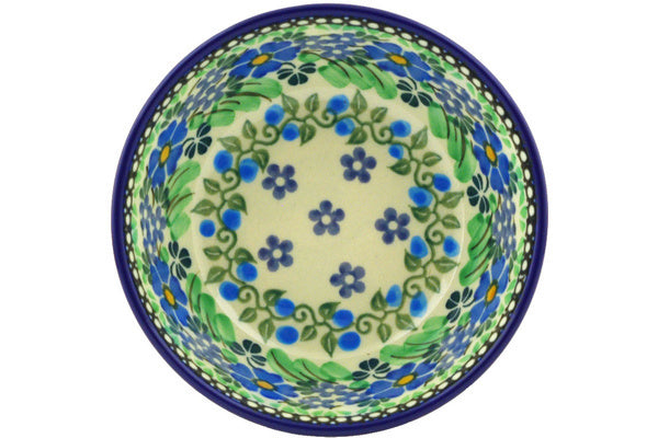 This Hiking Song 5" Bowl was handmade and hand decorated in Boleslawiec, Poland by skilled artisans according to old traditional methods. This is a Polish pottery Signature Unikat, which means that it has been hand painted with both sponges and brushes and it is signed by the artist who painted it. Unikat pieces are the most intricate works of art. Larger Unikat items take hours of very careful work to finish. This Polish stoneware is microwave, dishwasher, freezer, and oven safe up to 480°F. It does not contain lead or cadmium. It is part of the Hiking Song Collection.