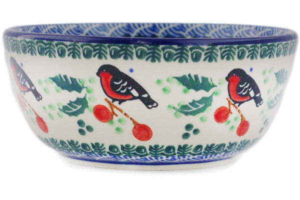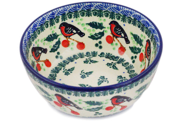 This Holly Robin 5" Bowl was handmade and hand decorated in Boleslawiec, Poland by skilled artisans according to old traditional methods. This Polish stoneware is microwave, dishwasher, freezer, and oven safe up to 480°F. It does not contain lead or cadmium. It is part of the Holly Robin Collection.