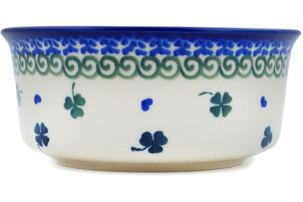 This Lucky Clovers 5" Bowl was handmade and hand decorated in Boleslawiec, Poland by skilled artisans according to old traditional methods. This Polish stoneware is microwave, dishwasher, freezer, and oven safe up to 480°F. It does not contain lead or cadmium. It is part of the Lucky Clovers Collection.