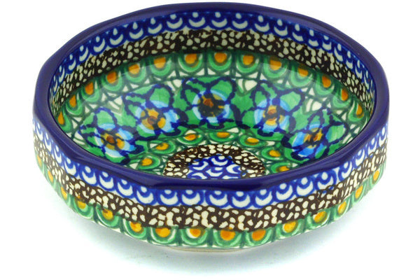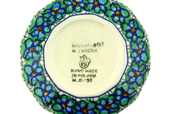 This Mardi Gras 5" Bowl was handmade and hand decorated in Boleslawiec, Poland by skilled artisans according to old traditional methods. This is a Polish pottery Signature Unikat, which means that it has been hand painted with both sponges and brushes and it is signed by the artist who painted it. Unikat pieces are the most intricate works of art. Larger Unikat items take hours of very careful work to finish. This Polish stoneware is microwave, dishwasher, freezer, and oven safe up to 480°F. It does not contain lead or cadmium. It is part of the Mardi Gras Collection.