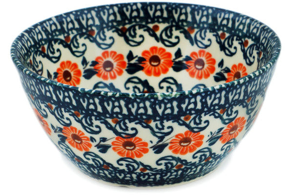 This Meadow Floret 5" Bowl was handmade and hand decorated in Boleslawiec, Poland by skilled artisans according to old traditional methods. This is a Polish pottery Signature Unikat, which means that it has been hand painted with both sponges and brushes and it is signed by the artist who painted it. Unikat pieces are the most intricate works of art. Larger Unikat items take hours of very careful work to finish. This Polish stoneware is microwave, dishwasher, freezer, and oven safe up to 480°F. It does not contain lead or cadmium. It is part of the Meadow Floret Collection.