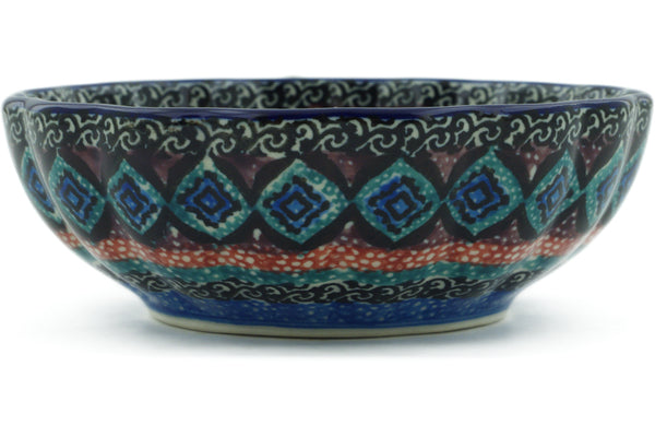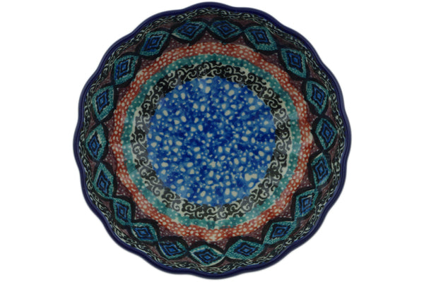 This Mesa 5" Scalloped Fluted Bowl was handmade and hand decorated in Boleslawiec, Poland by skilled artisans according to old traditional methods. This is a Polish pottery Signature Unikat, which means that it has been hand painted with both sponges and brushes and it is signed by the artist who painted it. Unikat pieces are the most intricate works of art. Larger Unikat items take hours of very careful work to finish. This Polish stoneware is microwave, dishwasher, freezer, and oven safe up to 480°F. It does not contain lead or cadmium. It is part of the Mesa Collection.
