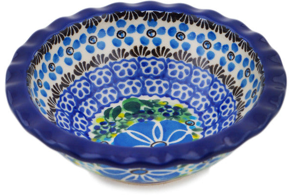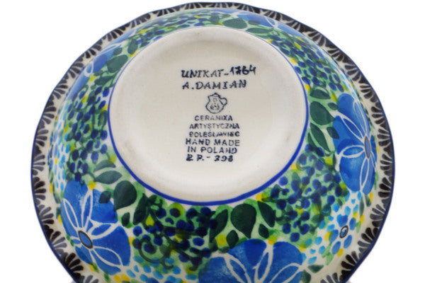 This Morning Glory 5" Bowl was handmade and hand decorated in Boleslawiec, Poland by skilled artisans according to old traditional methods. This is a Polish pottery Signature Unikat, which means that it has been hand painted with both sponges and brushes and it is signed by the artist who painted it. Unikat pieces are the most intricate works of art. Larger Unikat items take hours of very careful work to finish. This Polish stoneware is microwave, dishwasher, freezer, and oven safe up to 480°F. It does not contain lead or cadmium. It is part of the Morning Glory Collection.
