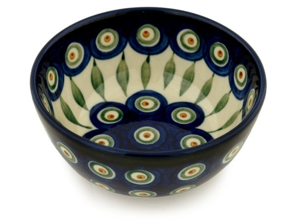 This Peacock Leaves 5" Bowl was handmade and hand decorated in Boleslawiec, Poland by skilled artisans according to old traditional methods. This Polish stoneware is microwave, dishwasher, freezer, and oven safe up to 480°F. It does not contain lead or cadmium. It is part of the Peacock Leaves Collection.
