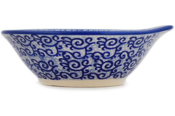 This Periwinkle Sweetness 5" Bowl was handmade and hand decorated in Boleslawiec, Poland by skilled artisans according to old traditional methods. This is a Polish pottery Signature Unikat, which means that it has been hand painted with both sponges and brushes and it is signed by the artist who painted it. Unikat pieces are the most intricate works of art. Larger Unikat items take hours of very careful work to finish. This Polish stoneware is microwave, dishwasher, freezer, and oven safe up to 480°F. It does not contain lead or cadmium. It is part of the Periwinkle Sweetness Collection.