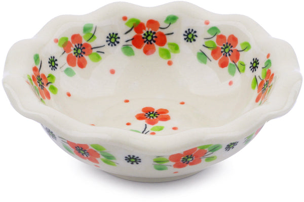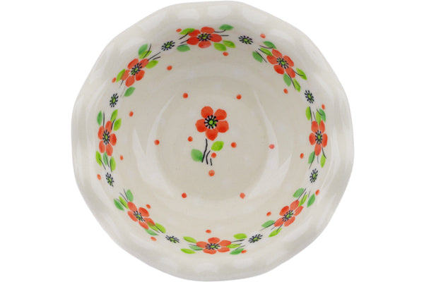 This Poppy Flower 5" Bowl was handmade and hand decorated in Boleslawiec, Poland by skilled artisans according to old traditional methods. This Polish stoneware is microwave, dishwasher, freezer, and oven safe up to 480°F. It does not contain lead or cadmium. It is part of the Poppy Flower Collection.