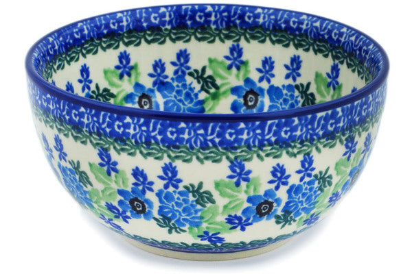 This Pretty In Blue 5" Bowl was handmade and hand decorated in Boleslawiec, Poland by skilled artisans according to old traditional methods. This Polish stoneware is microwave, dishwasher, freezer, and oven safe up to 480°F. It does not contain lead or cadmium. It is part of the Pretty In Blue Collection.