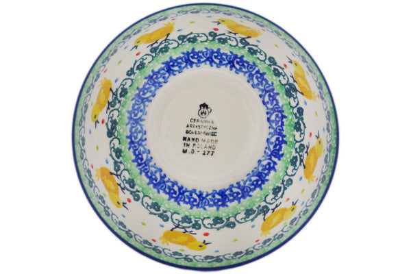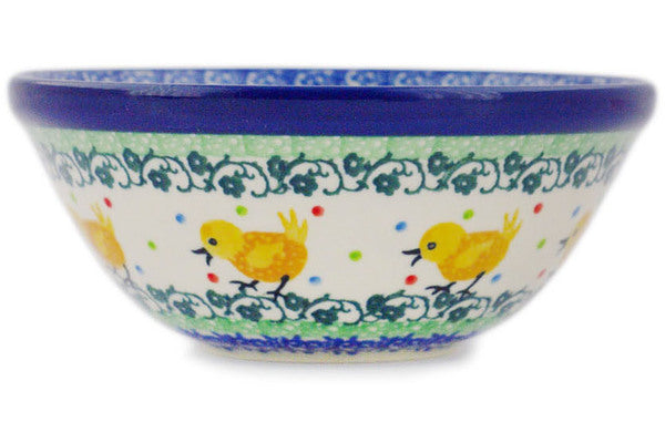This Pretty Pullet 5" Bowl was handmade and hand decorated in Boleslawiec, Poland by skilled artisans according to old traditional methods. This Polish stoneware is microwave, dishwasher, freezer, and oven safe up to 480°F. It does not contain lead or cadmium. It is part of the Pretty Pullet Collection.