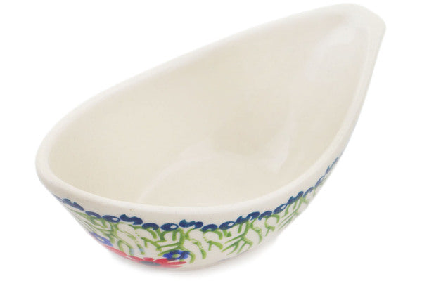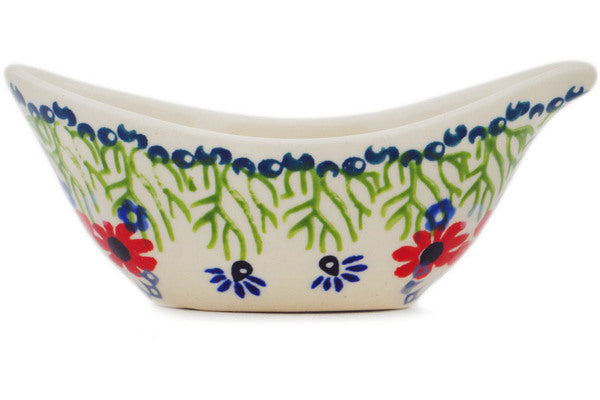 This Red Blossom 5" Bowl was handmade and hand decorated in Boleslawiec, Poland by skilled artisans according to old traditional methods. This Polish stoneware is microwave, dishwasher, freezer, and oven safe up to 480°F. It does not contain lead or cadmium. It is part of the Red Blossom Collection.