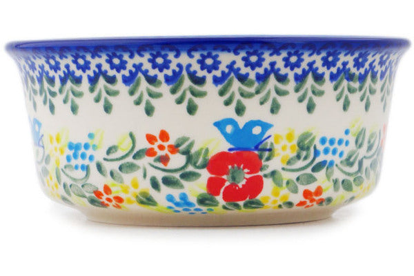 This Ring Of Meadow Flowers 5" Bowl was handmade and hand decorated in Boleslawiec, Poland by skilled artisans according to old traditional methods. This Polish stoneware is microwave, dishwasher, freezer, and oven safe up to 480°F. It does not contain lead or cadmium. It is part of the Ring Of Meadow Flowers Collection.