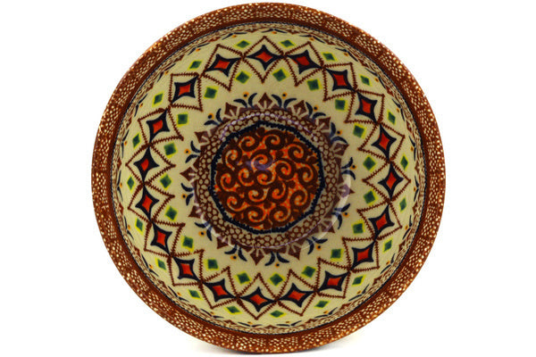 This Rustic Diamond 5" Bowl was handmade and hand decorated in Boleslawiec, Poland by skilled artisans according to old traditional methods. This is a Polish pottery Signature Unikat, which means that it has been hand painted with both sponges and brushes and it is signed by the artist who painted it. Unikat pieces are the most intricate works of art. Larger Unikat items take hours of very careful work to finish. This Polish stoneware is microwave, dishwasher, freezer, and oven safe up to 480°F. It does not contain lead or cadmium. It is part of the Rustic Diamond Collection.