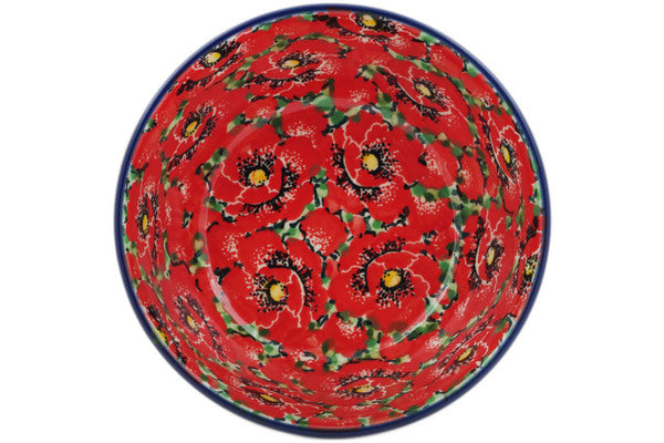 This Savvy Scarlet 5" Bowl was handmade and hand decorated in Boleslawiec, Poland by skilled artisans according to old traditional methods. This is a Polish pottery Signature Unikat, which means that it has been hand painted with both sponges and brushes and it is signed by the artist who painted it. Unikat pieces are the most intricate works of art. Larger Unikat items take hours of very careful work to finish. This Polish stoneware is microwave, dishwasher, freezer, and oven safe up to 480°F. It does not contain lead or cadmium. It is part of the Savvy Scarlet Collection.