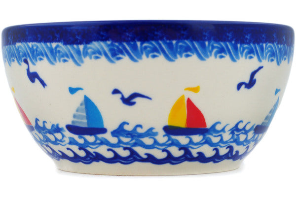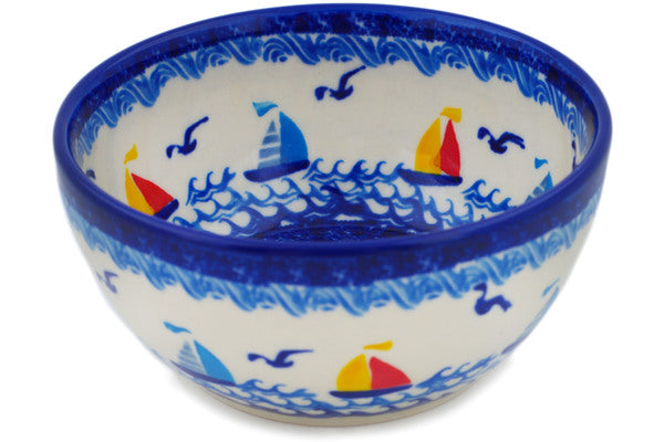 This Sea Sights 5" Bowl was handmade and hand decorated in Boleslawiec, Poland by skilled artisans according to old traditional methods. This is a Polish pottery Signature Unikat, which means that it has been hand painted with both sponges and brushes and it is signed by the artist who painted it. Unikat pieces are the most intricate works of art. Larger Unikat items take hours of very careful work to finish. This Polish stoneware is microwave, dishwasher, freezer, and oven safe up to 480°F. It does not contain lead or cadmium. It is part of the Sea Sights Collection.