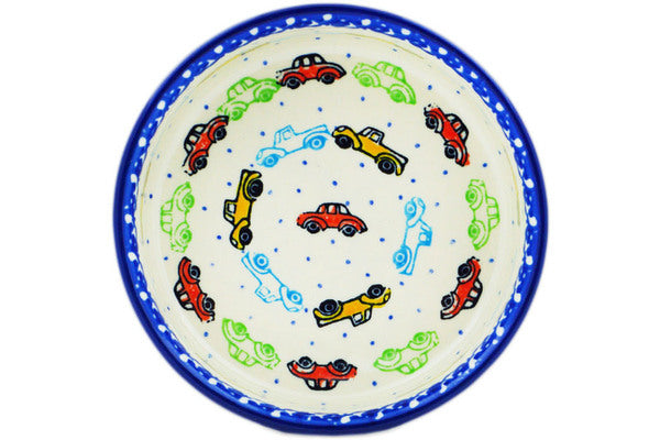 This Traffic Jam 5" Bowl was handmade and hand decorated in Boleslawiec, Poland by skilled artisans according to old traditional methods. This Polish stoneware is microwave, dishwasher, freezer, and oven safe up to 480°F. It does not contain lead or cadmium. It is part of the Traffic Jam Collection.