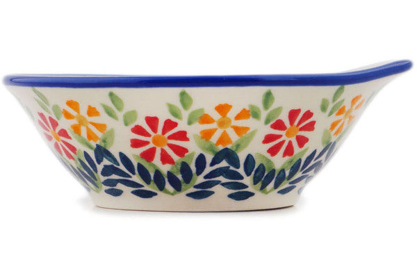 This Wave Of Flowers 5" Bowl was handmade and hand decorated in Boleslawiec, Poland by skilled artisans according to old traditional methods. This Polish stoneware is microwave, dishwasher, freezer, and oven safe up to 480°F. It does not contain lead or cadmium. It is part of the Wave Of Flowers Collection.