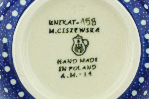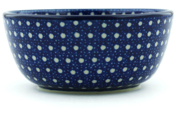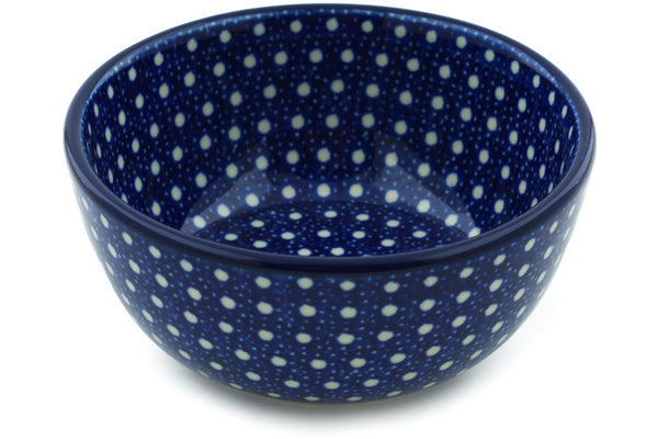 This White Polka Dot 5" Bowl was handmade and hand decorated in Boleslawiec, Poland by skilled artisans according to old traditional methods. This is a Polish pottery Signature Unikat, which means that it has been hand painted with both sponges and brushes and it is signed by the artist who painted it. Unikat pieces are the most intricate works of art. Larger Unikat items take hours of very careful work to finish. This Polish stoneware is microwave, dishwasher, freezer, and oven safe up to 480°F. It does not contain lead or cadmium. It is part of the White Polka Dot Collection.