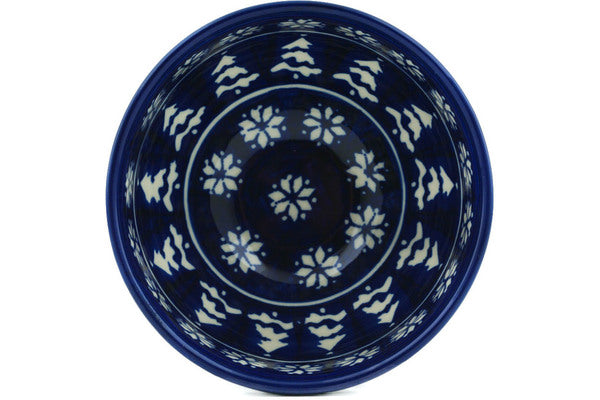 This Winter Night 5" Bowl was handmade and hand decorated in Boleslawiec, Poland by skilled artisans according to old traditional methods. This Polish stoneware is microwave, dishwasher, freezer, and oven safe up to 480°F. It does not contain lead or cadmium. It is part of the Winter Night Collection.