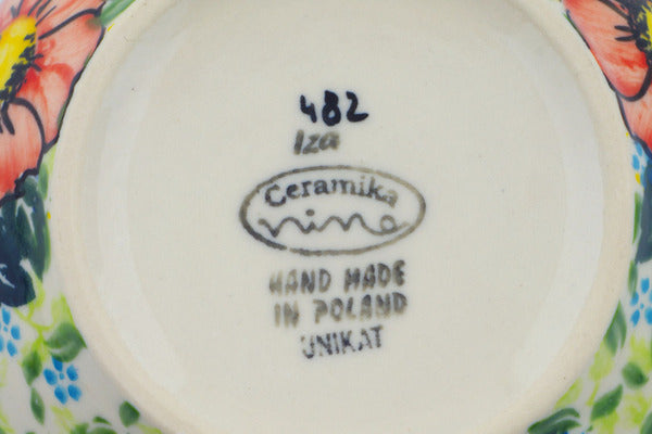 This Bloom Tales 5" Bowl was handmade and hand decorated in Boleslawiec, Poland by skilled artisans according to old traditional methods. This is a Polish pottery Signature Unikat, which means that it has been hand painted with both sponges and brushes and it is signed by the artist who painted it. Unikat pieces are the most intricate works of art. Larger Unikat items take hours of very careful work to finish. This Polish stoneware is microwave, dishwasher, freezer, and oven safe up to 480°F. It does not contain lead or cadmium. It is part of the Bloom Tales Collection.