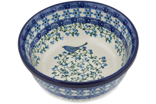 This Blue Warbler 6" Bowl was handmade and hand decorated in Boleslawiec, Poland by skilled artisans according to old traditional methods. This Polish stoneware is microwave, dishwasher, freezer, and oven safe up to 480°F. It does not contain lead or cadmium. It is part of the Blue Warbler Collection.